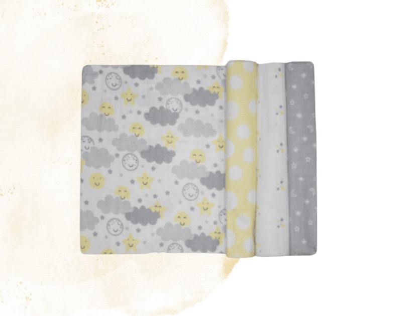 Our 100% Cotton Blankets are super soft and comfy. Our receiving blankets are sold in sets of 4. They’re perfect for keeping little ones snug and warm.