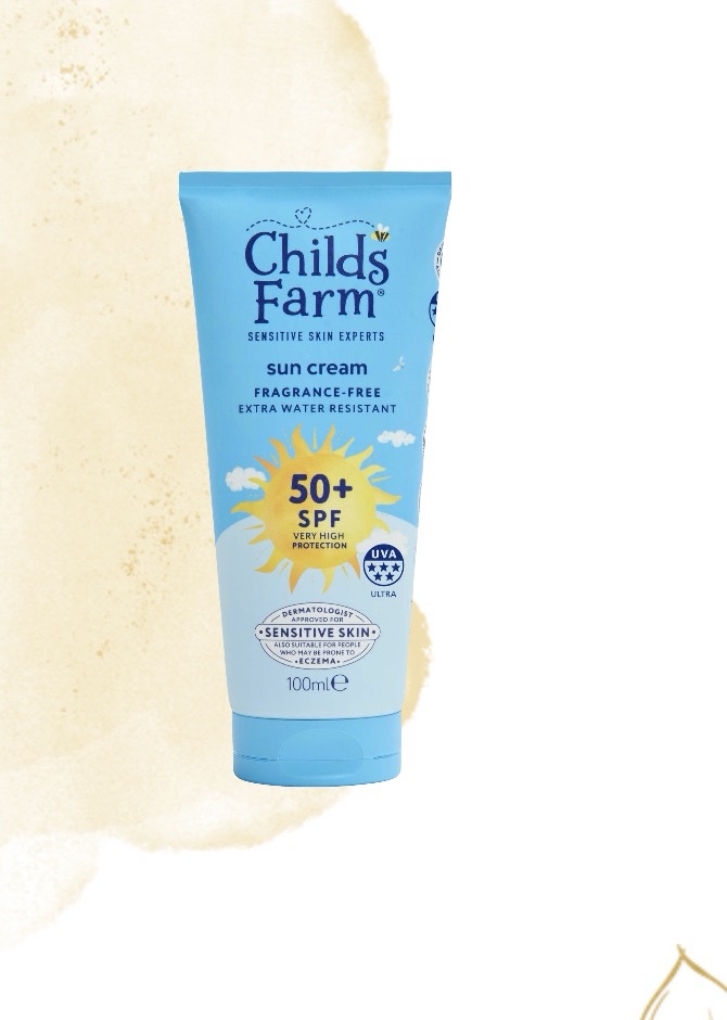Childs Farm’s SPF 50+ sun cream provides instant protection to delicate skin, protecting skin against both UVA and UVB rays and sun damage. This new formulation is kind to ocean andoctocrylene-free as well as being water resistant.