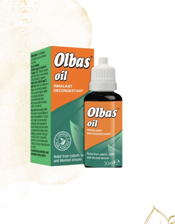 Olbas Oil is a remedy, of Swiss origin, for congestion in the chest and nose, some hayfever relief (in certain cases) and also for muscle ache via massage. It is made from a mixture of several different essential oils and has been marketed since before 1916.