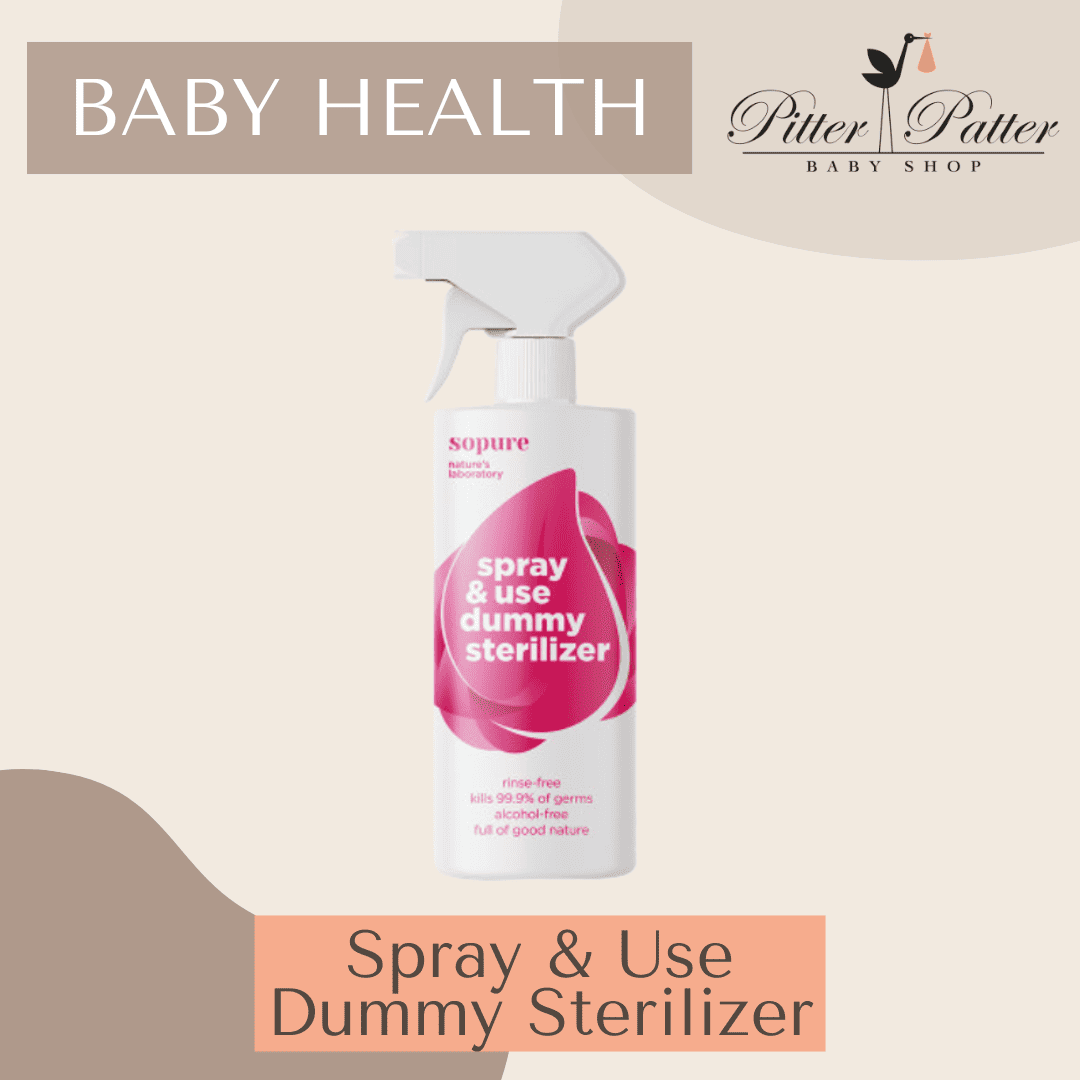 SoPure Dummy Sterilizer is an innovative dummy spray for when you are out and about and are concerned about the cleanliness of baby’s pacifier. The Dummy Sterilizer product aids in eliminating viruses, bacteria, yeast and mould without using harmful chemicals and additives